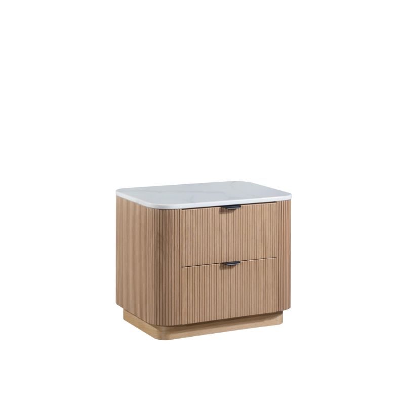 Melrose Fluted Solid Wood Marble Top Bedside Table